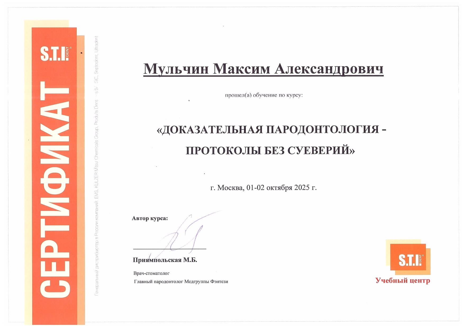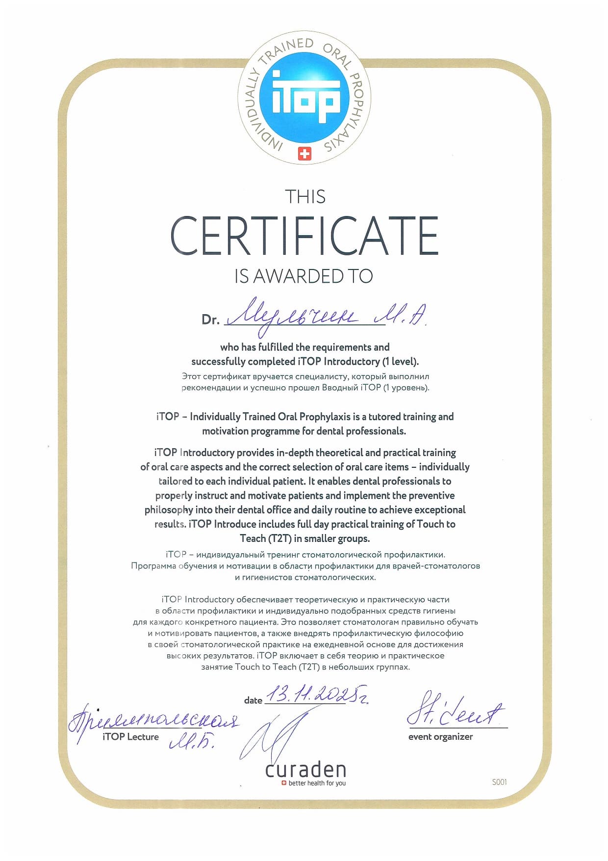 2017 г. – прошел процедуру первичной аккредитации по специальности «Стоматология общей практики».